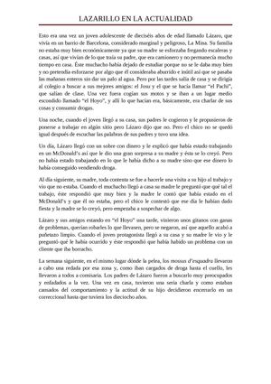 LAZARILLO EN LA ACTUALIDAD