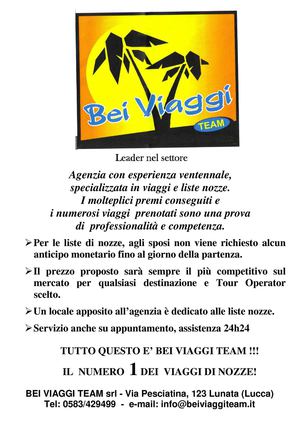 BEI VIAGGI TEAM srl - Via Pesciatina, 123 Lunata (Lucca)